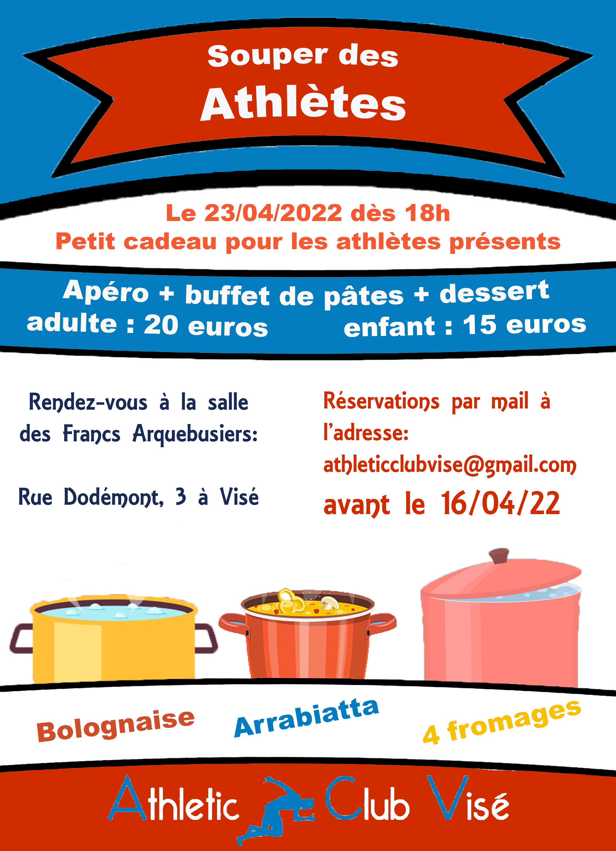 Merci de nous confirmer le nombre de participants par mail (athleticclubvise@gmail.com) avant le 16 avril.