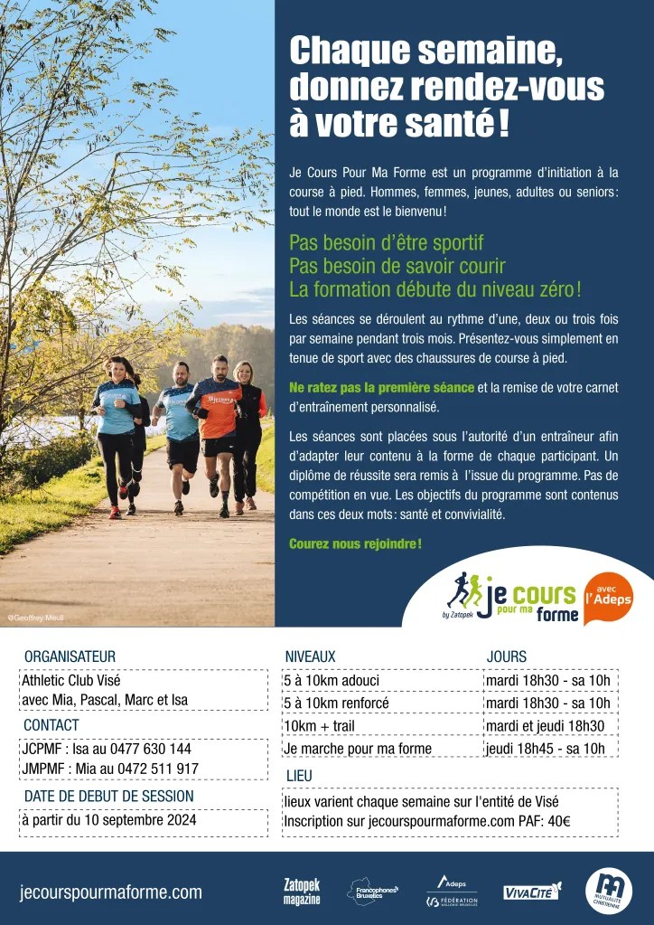 Le samedi 13 septembre, nous vous donnons rendez-vous pour une Journée Découverte, il s’agit d’un entraînement plus long pour tester différentes disciplines en intérieur et à l’extérieur ; rendez-vous à 10 h au hall omnisports de Visé.